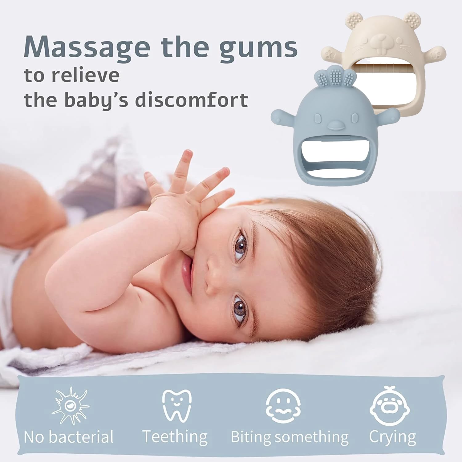 - Food Grade Silicon: Our baby hand teethers are made of food grade silicone that is textured to help massage sore gums and provide relief to emerging teeth. The texture also helps your baby discover and explore new senses, so go ahead and chew on this.
