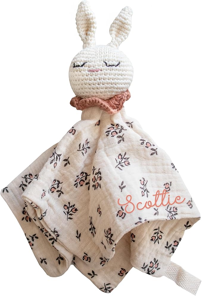 Personalized Bunny Lovey – Baby’s First Easter Gift – Custom Name Security Blanket for Infant or Toddler – Soft Plush Bunny Blanket for Boys & Girls – Easter Basket Filler Newborn Gift