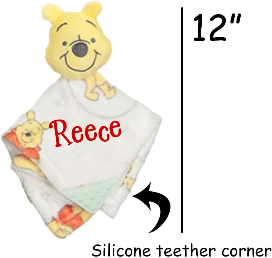 Baby Personalized Blanket Set 2 Piece Lovey and Teether Snuggler with Large Blanket for Newborn Nursery Decor (Yellow Winnie The Pooh)